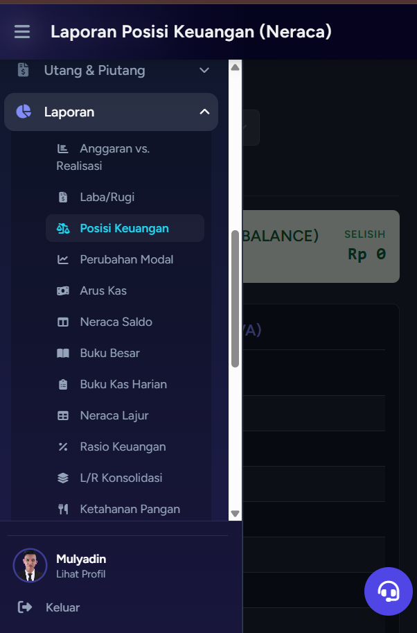 - Laporan Posisi Keuangan / Neraca (Kondisi aset, kewajiban, dan modal)